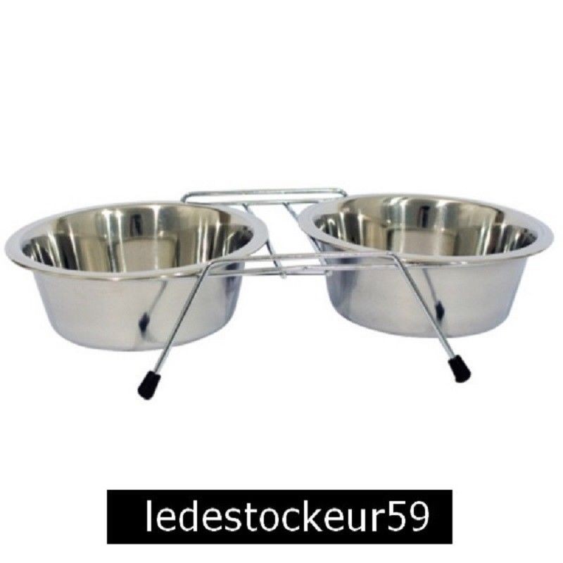 Gamelle double inox sur support 350ml 2 x 13cm pour chat et petit chien
